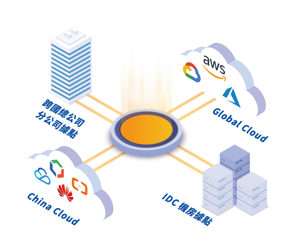 結合多雲整合服務及豐富的專線資源,針對想進入中國或是想跨足全世界的企業,提供多功能解決方案,滿足跨國發展複雜的網路應用需求。